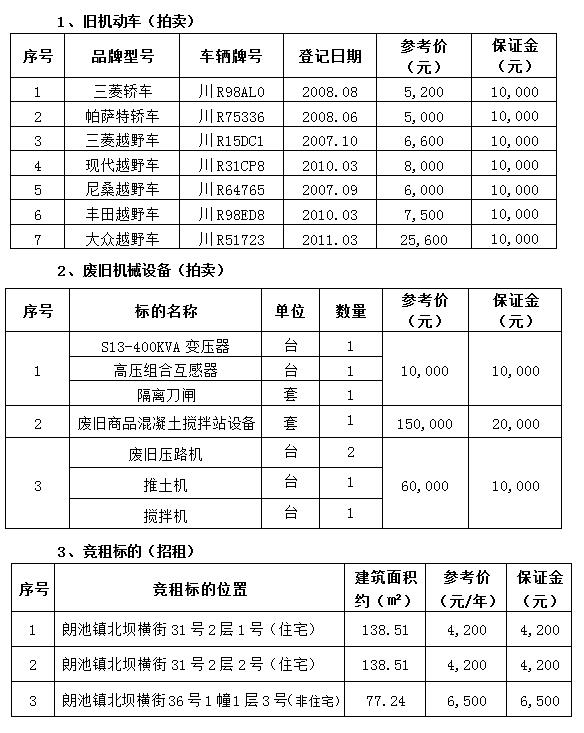 受委托,我公司定于2022年3月18日上午9時30分在營山縣公共資源交易中心3樓會議室對下列標的進行公開拍賣(招租)。